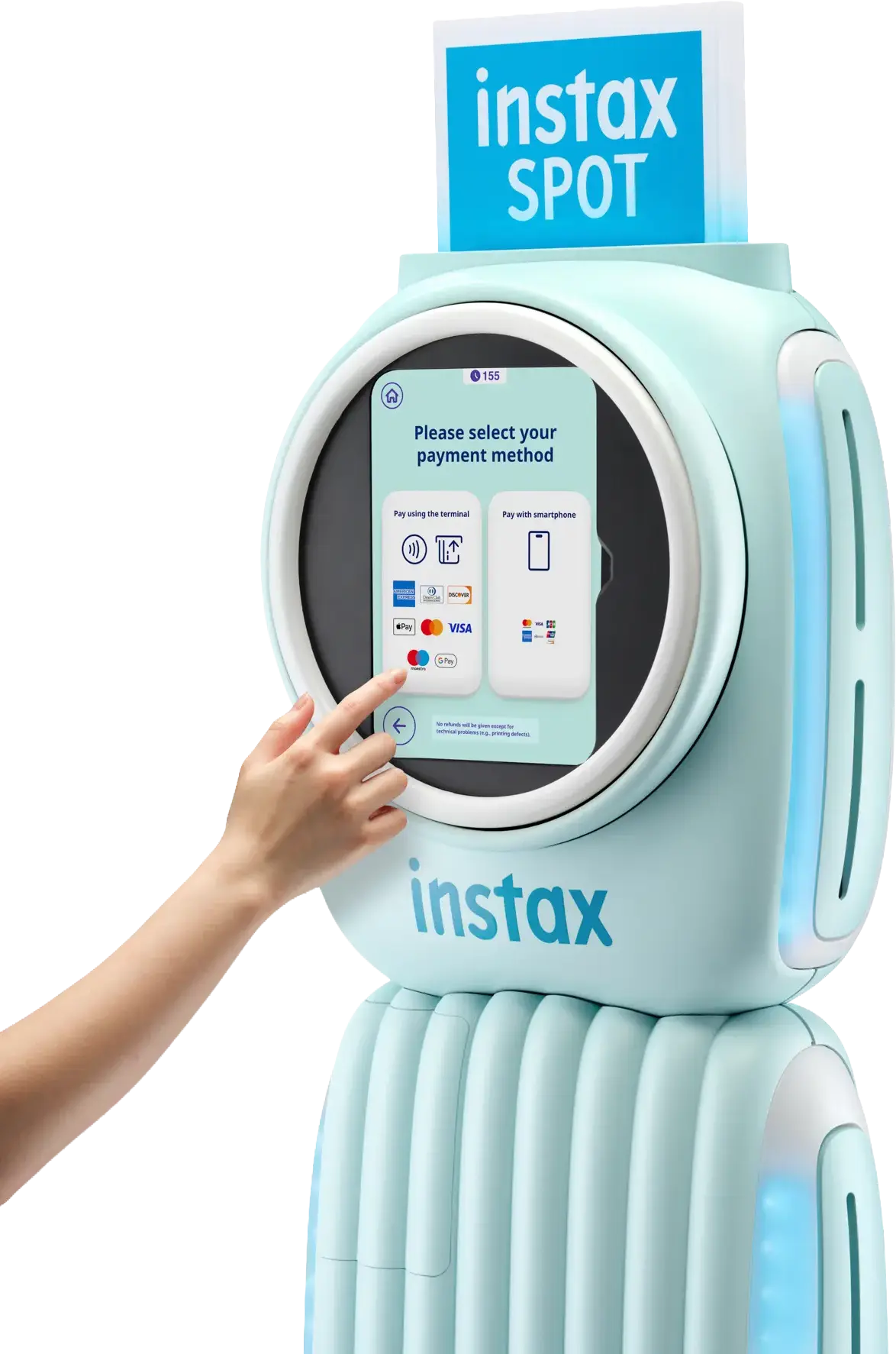 Einfach zu installieren, einfach zu verwalten und für Kunden einfach zu bedienen – der instax SPOT™ sorgt für sofortiges Engagement und ein echtes Fotoerlebnis. Mit dem selbstbedienbaren instax SPOT™ kann jeder die Faszination von instax™ Sofortbildfotografie erleben. Eine Kombination aus analogen Sofortbildern und einem modernen, interaktiven AR-Erlebnis.
